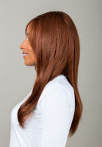 3 Lotus Rating. A soft, full chest length style with face-framing layers. Bluebell has machine wefting at the nape covered with a soft-touch fabric, with a monofilament top and a lace front.