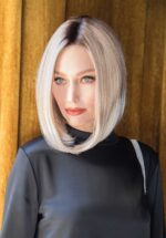 Sleek shoulder length blunt cut bob. Featuring a lace front with lace part cap.