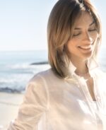 A shoulder length style, with feathery layers and beautiful side-swept bangs.