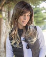 A luscious long layered wavy style, with a beautiful swept fringe.